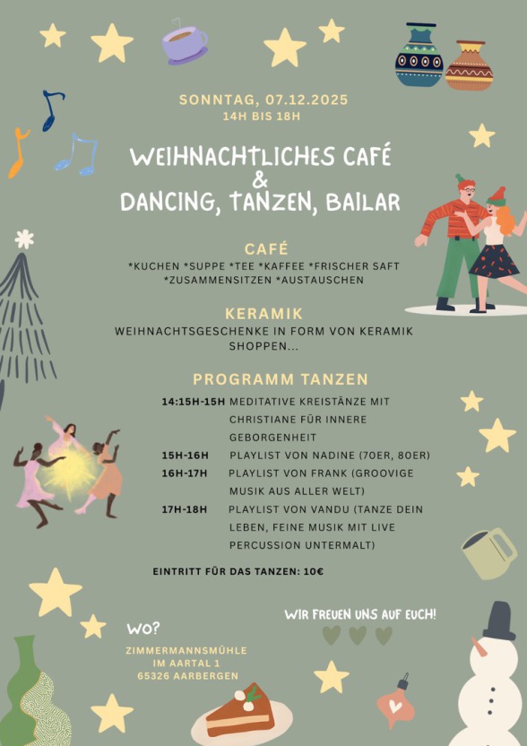 | So | 07.12. | Café & Tanzen mit Nadine und Anderen in Aarbergen mehr Info |